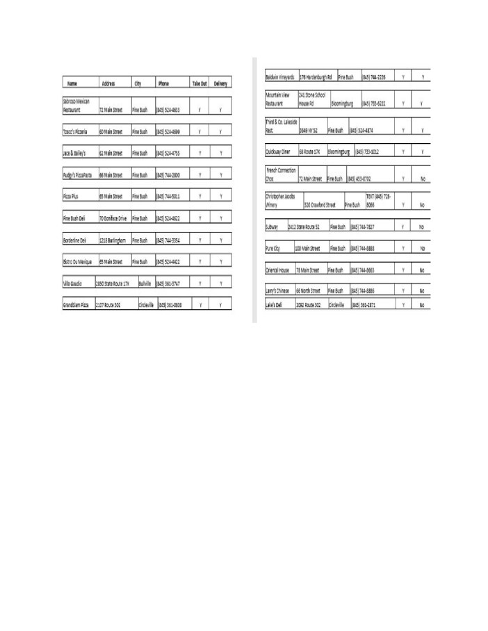These Are Pine Bush restaurants and convenience stores that have take out or will deliver: