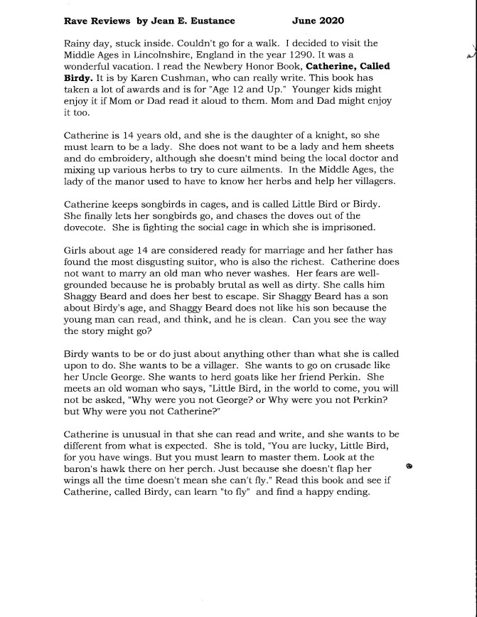 Rave Reviews by Jean Eustance June 2020 Image Posted on June 1, 2020 by pinebushlibrary Share this: Click to share on Facebook (Opens in new window) Facebook Click to print (Opens in new window) Print Click to email a link to a friend (Opens in new window) Email Click to share on LinkedIn (Opens in new window) LinkedIn Like Loading... Related