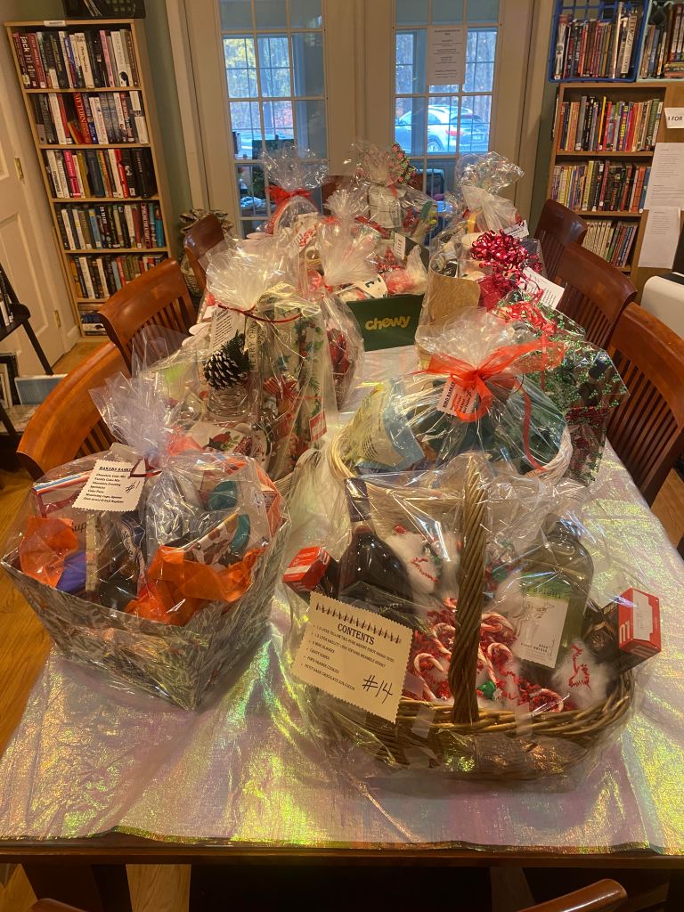 The Friends of the Library made the decision not to have the bake sale this year for their annual fundraiser. Instead they have made up (15 and counting) raffle baskets for a drawing on December 18th at 11 am.