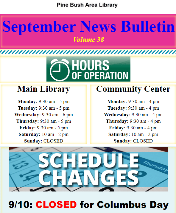 If you would like a copy of our newsletter delivered to your inbox twice a month send us an email PBL@rcls.org, send a privet message here on Facebook or sign up in person when you visit the library.