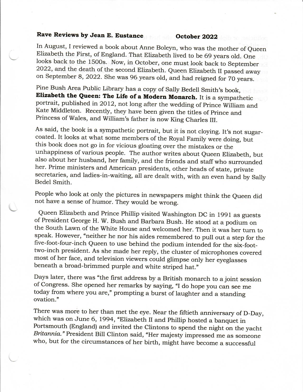 Posted on October 7, 2022 by pinebushlibrary Share this: Click to share on Facebook (Opens in new window) Facebook Click to print (Opens in new window) Print Click to email a link to a friend (Opens in new window) Email Click to share on LinkedIn (Opens in new window) LinkedIn Like Loading... Related