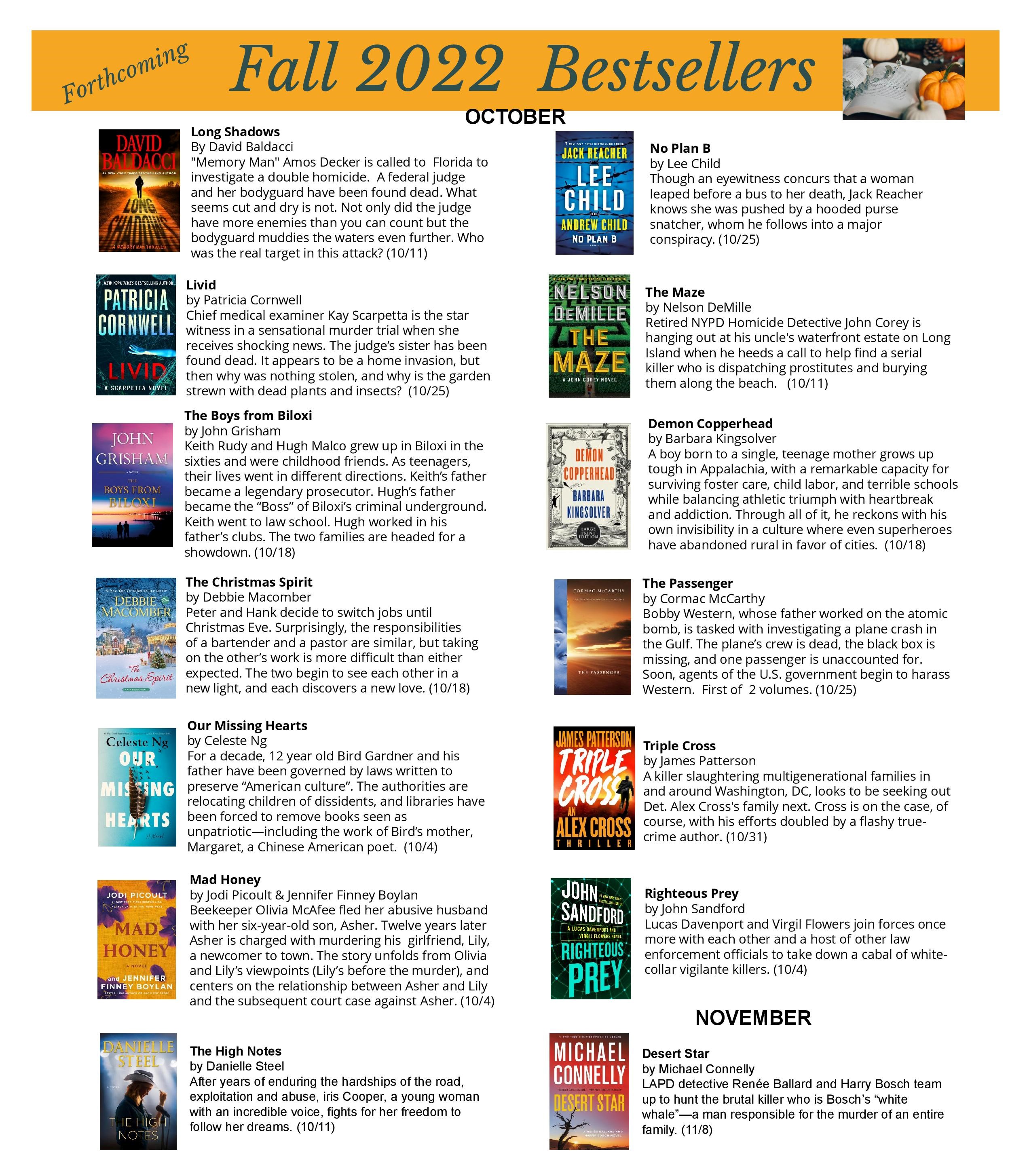 Fine Fall Reads Image Posted on October 13, 2022 by pinebushlibrary Share this: Click to share on Facebook (Opens in new window) Facebook Click to print (Opens in new window) Print Click to email a link to a friend (Opens in new window) Email Click to share on LinkedIn (Opens in new window) LinkedIn Like Loading... Related