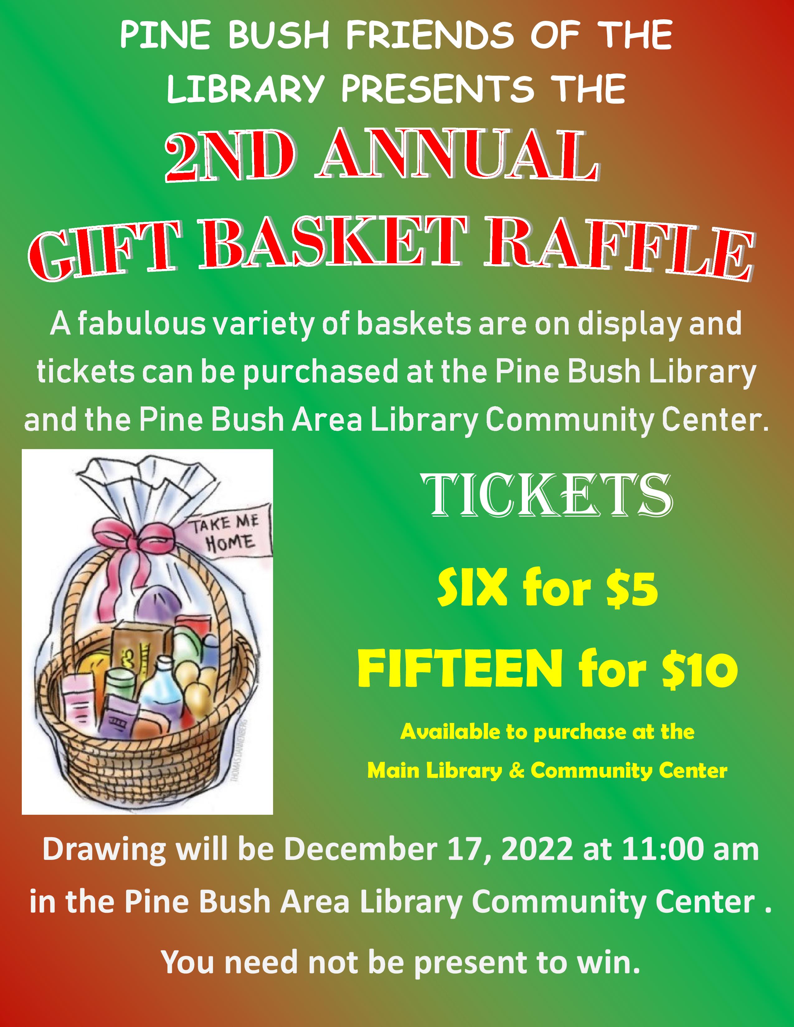 Posted on November 16, 2022 by pinebushlibrary Starting Monday, November 21st. Almost 20 baskets to chose from, all proceeds go directly to the Pine Bush Library. Share this: Click to share on Facebook (Opens in new window) Facebook Click to print (Opens in new window) Print Click to email a link to a friend (Opens in new window) Email Click to share on LinkedIn (Opens in new window) LinkedIn Like Loading... Related