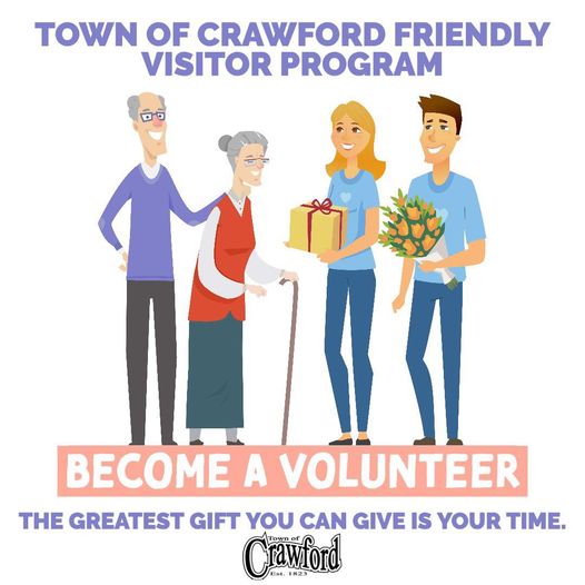 The Town of Crawford is always looking for volunteers for the Friendly Visitors Program. This program links volunteers in the town with those in need!