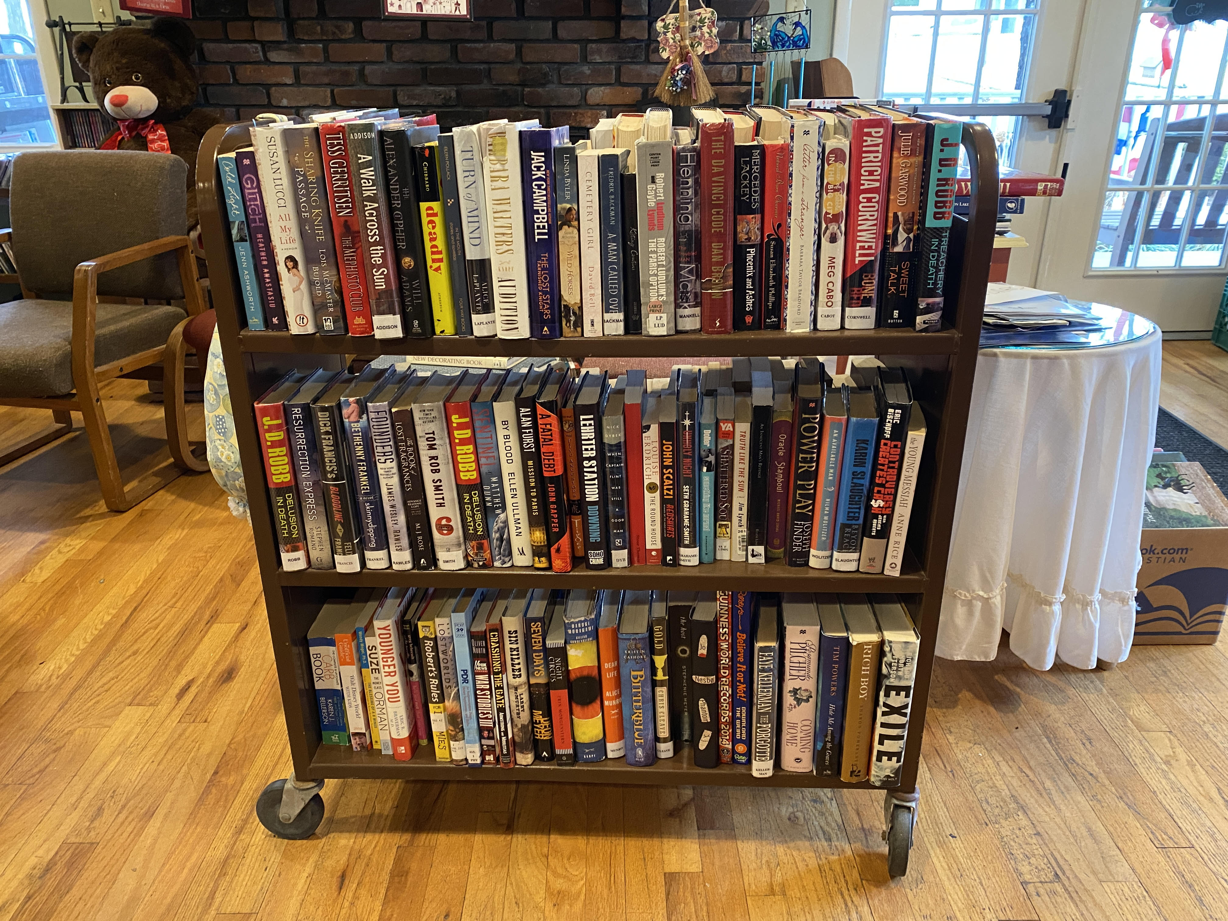 We have recently sorted through and restocked our Free Little Library on the front porch of the community center!!!!!