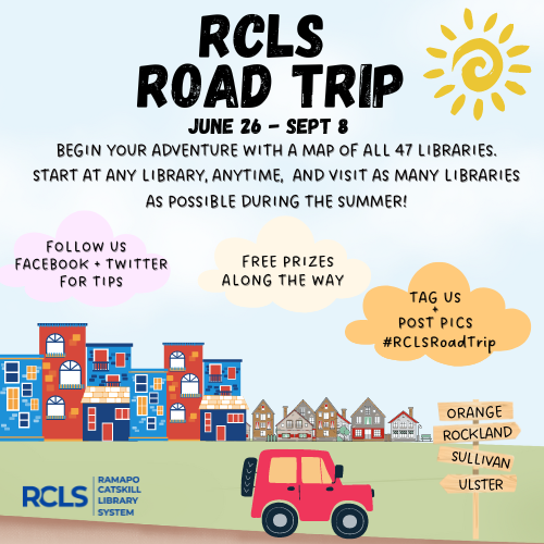 Are you looking for a local adventure with your kids this summer? Take the #RCLSRoadTrip! Begin your journey with a map of all 47 RCLS libraries. Start at any library, anytime, and explore as many libraries as possible! Get a sticker on your map for each library visited and win free prizes. Remember to discover the attractions and activities of each community. The #RCLSRoadTrip takes place from June 26 to Sept. 8.