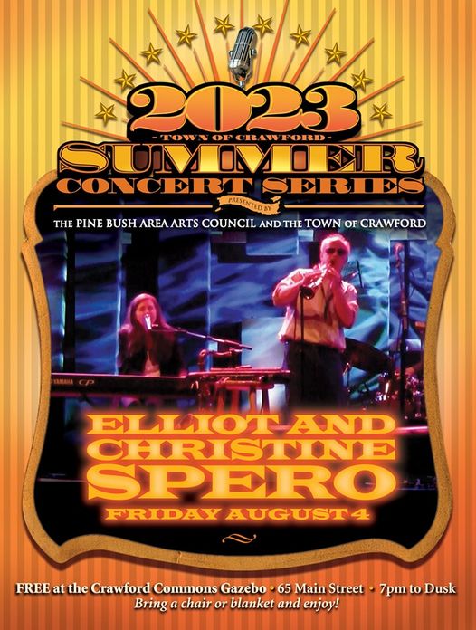 Summer Concert Series Posted on August 4, 2023 by pinebushlibrary Stop by the Town of Crawford Gazebo tonight and enjoy a free concert. Share this: Click to share on Facebook (Opens in new window) Facebook Click to print (Opens in new window) Print Click to email a link to a friend (Opens in new window) Email Click to share on LinkedIn (Opens in new window) LinkedIn Like Loading... Related