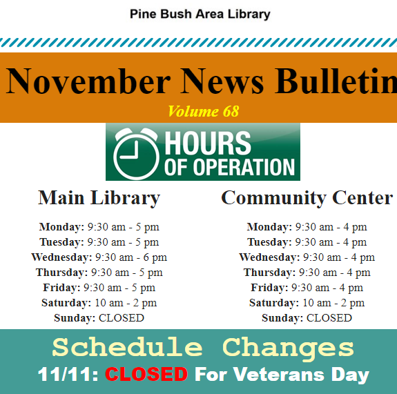 If you would like to get a copy of our newsletter delivered to your inbox twice a month send us an email PBL@rcls.org, send us a message on Facebook or sign up next time you visit the library