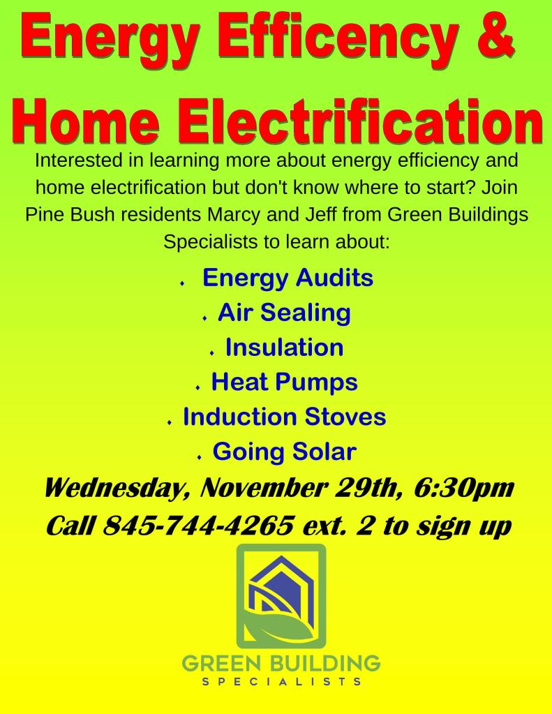 RESCHEDULED Posted on November 29, 2023 by pinebushlibrary Energy Efficiency & Home Electrification will now be held January 10th (Snow Day January 17th) Share this: Click to share on Facebook (Opens in new window) Facebook Click to print (Opens in new window) Print Click to email a link to a friend (Opens in new window) Email Click to share on LinkedIn (Opens in new window) LinkedIn Like Loading... Related