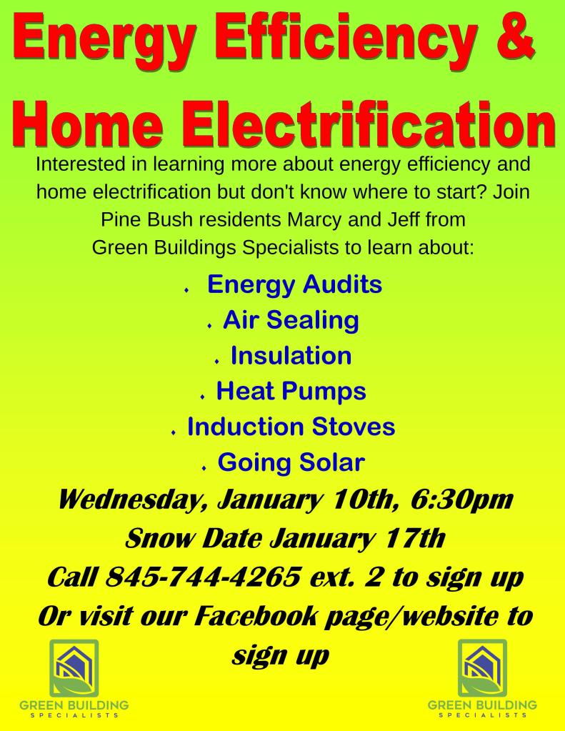 Posted on December 18, 2023 by pinebushlibrary Click the link below to reserve your spot. https://www.eventbrite.com/e/energy-efficiency-and-home-electrification-what-you-need-to-know-tickets-769238792937?aff=oddtdtcreator&fbclid=IwAR2XuCOzS6lTh5aZJUXWW1wIMRbDjtFrzLu_Yv99A8h1onShUpIfSoXD8G4 Share this: Click to share on Facebook (Opens in new window) Facebook Click to print (Opens in new window) Print Click to email a link to a friend (Opens in new window) Email Click to share on LinkedIn (Opens in new window) LinkedIn Like Loading... Related