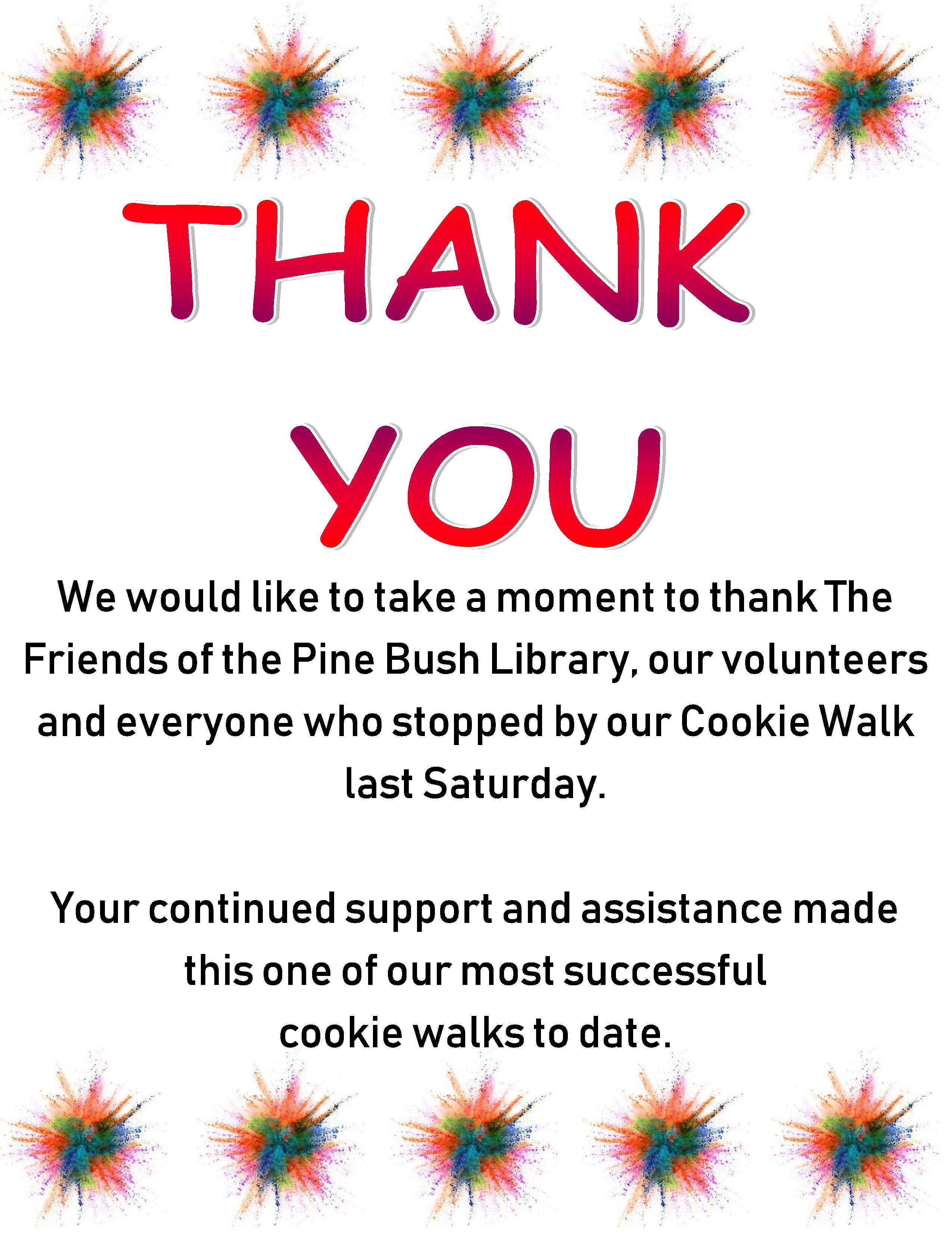 We would like to take a moment to thank The Friends of the Pine Bush Library, our volunteers and everyone who stopped by our Cookie Walk last Saturday.