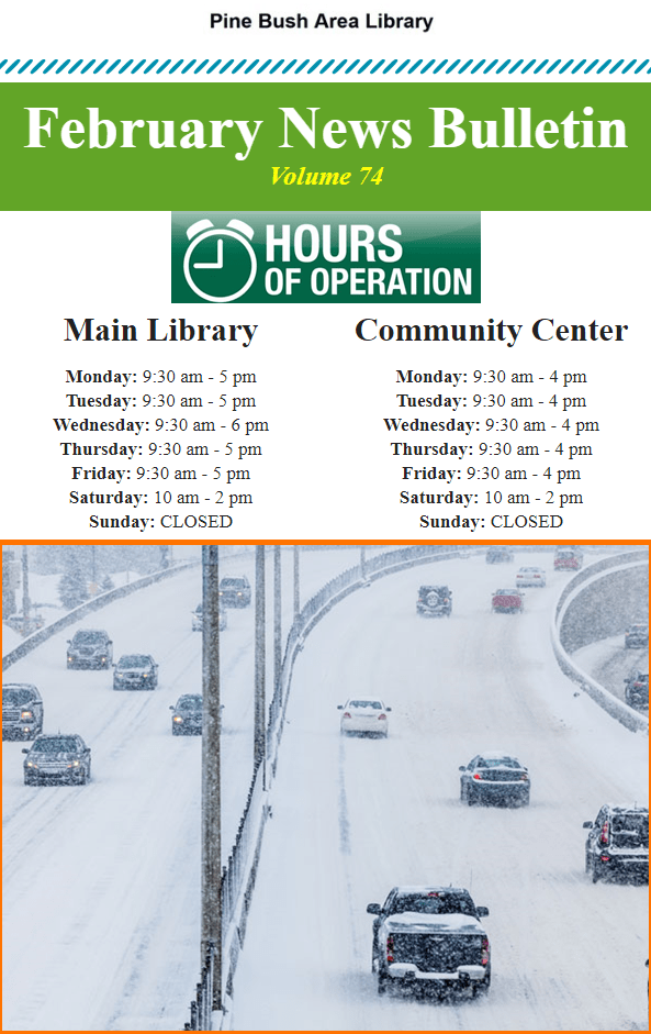 If you would like a copy of our newsletter delivered to your inbox twice a month let us know by sending an email to pbl@rcls.org or sign up in person next time you stop by the library.