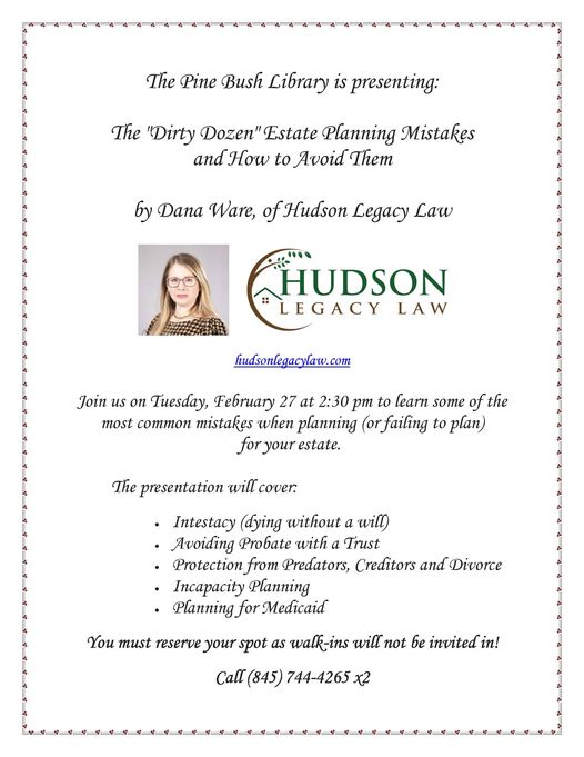 We still have a few spots left Posted on February 24, 2024 by pinebushlibrary Call 845-74-4265 ext. 2 to sign up Share this: Click to share on Facebook (Opens in new window) Facebook Click to print (Opens in new window) Print Click to email a link to a friend (Opens in new window) Email Click to share on LinkedIn (Opens in new window) LinkedIn Like Loading... Related