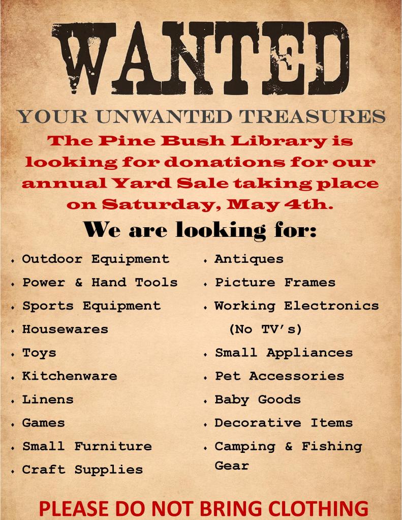 We will begin accepting donations Monday, April 8th when we open at 9:30am
