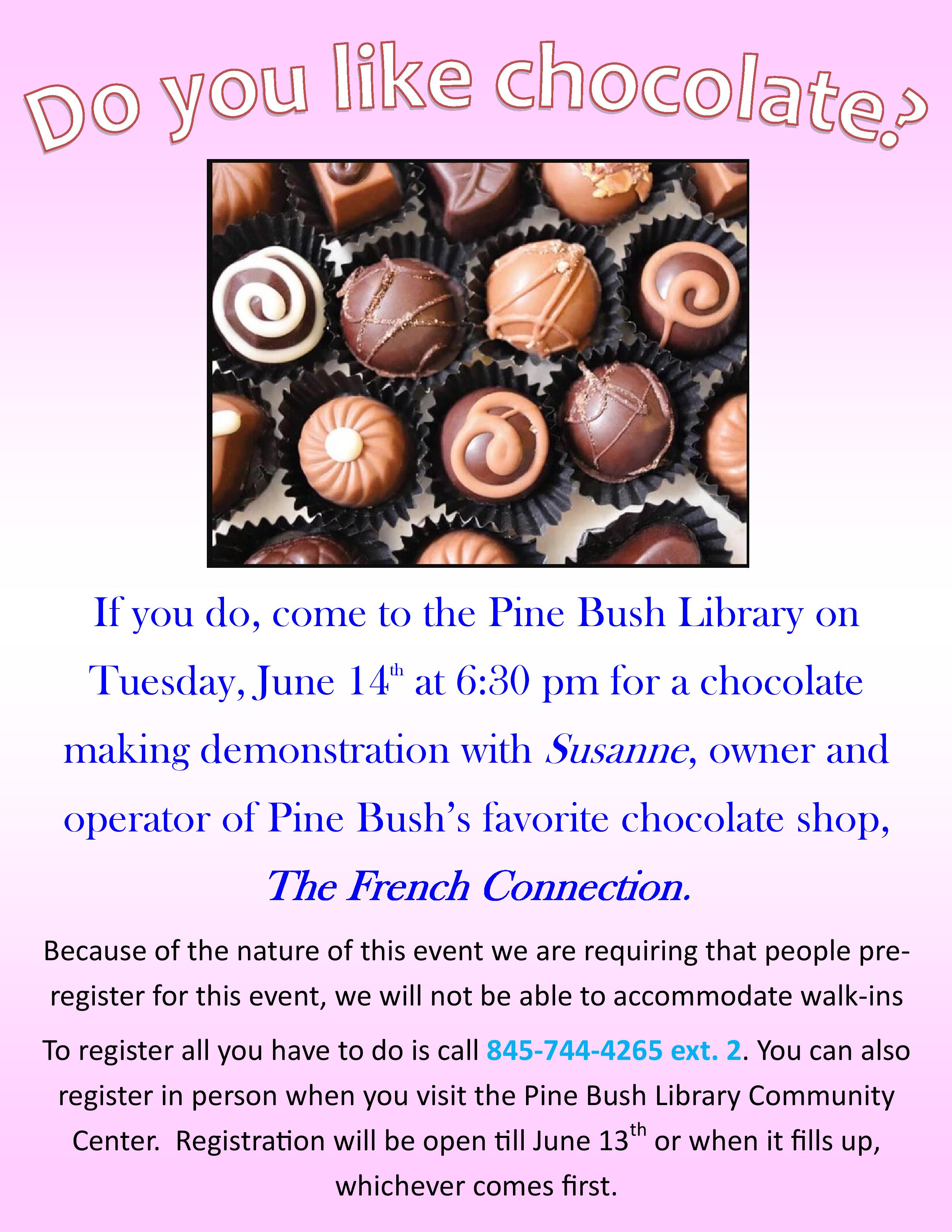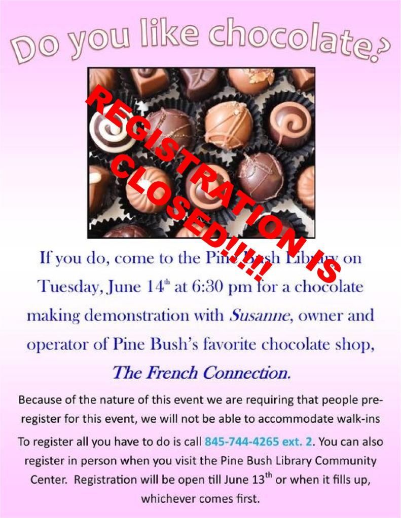 We have filled all available spots for the Chocolate Demonstration in June 14th.