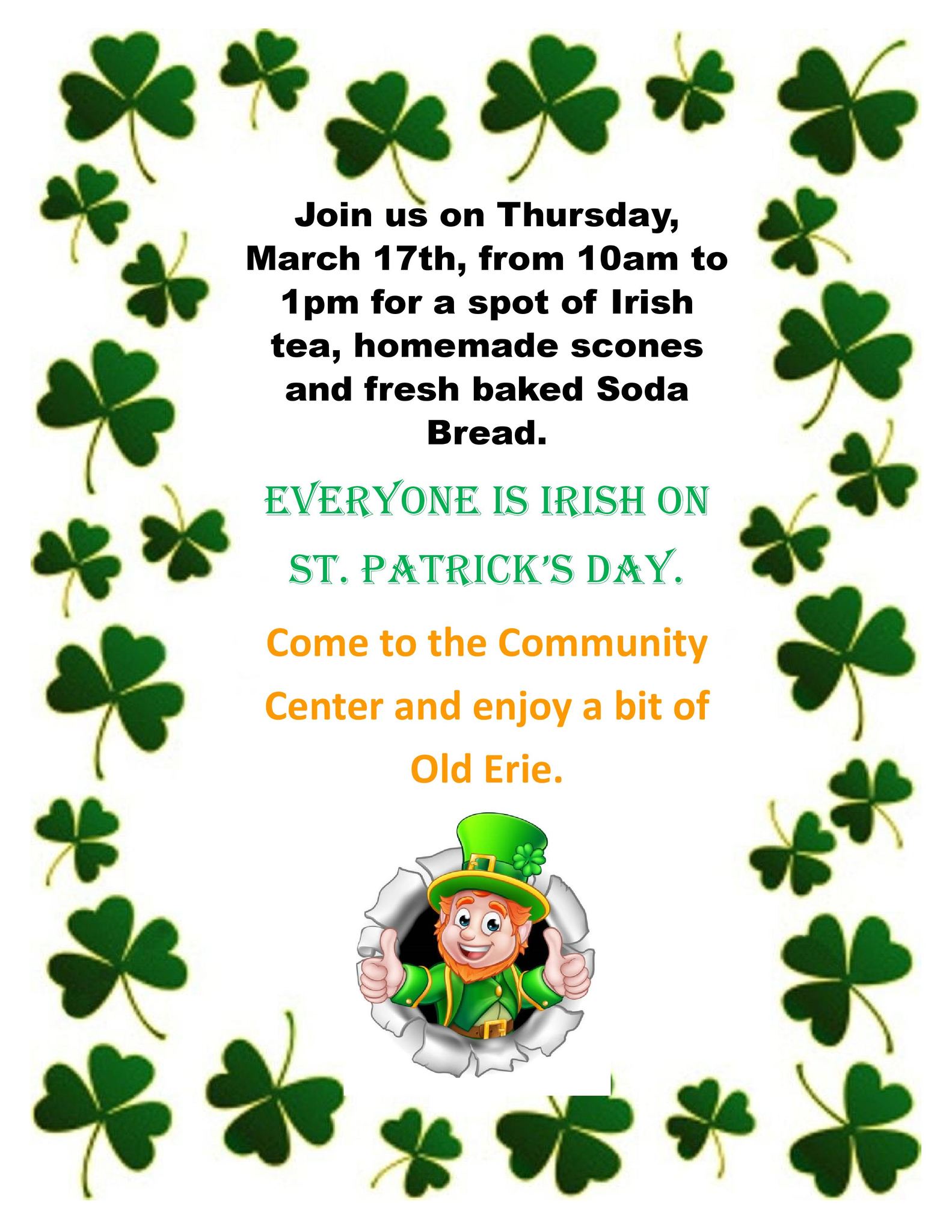 Don’t forget to come by the community center tomorrow from 10 to 1 for some homemade treats and tea.