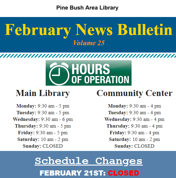 PRESCHOOL STORYTIME WITHMISS CHRISSY (Ages 3 – 5 years with 1 adult) Wednesdays February 2nd – 16th10:30 am