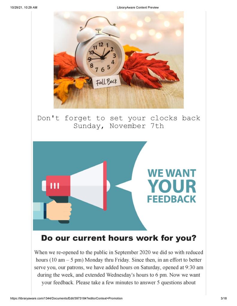 Are you happy with the current library hours? Would you like to see them extended or changed?