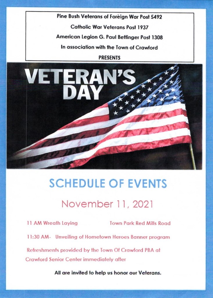 The Pine Bush VFW, Post 5492 is selling bricks to add to the Memorial in Pine Bush Park. The bricks are 4″ x 8″ and will be engraved with the names of veterans who wish to purchase them. The bricks can have 3 lines with a total of 14 characters on each line. Spaces count as characters. The lettering will be 3/4″ tall. Each brick is $50.If you are interested please stop by the Pine Bush Library and pick up a form.