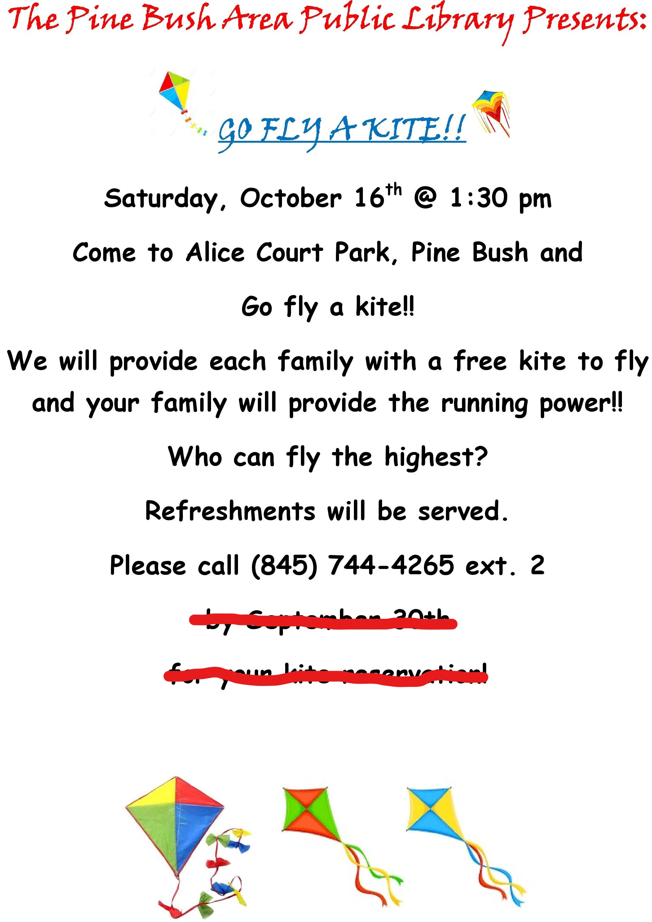 Please call (845) 744-4265 ext. 2 by September 30thfor your kite reservation!