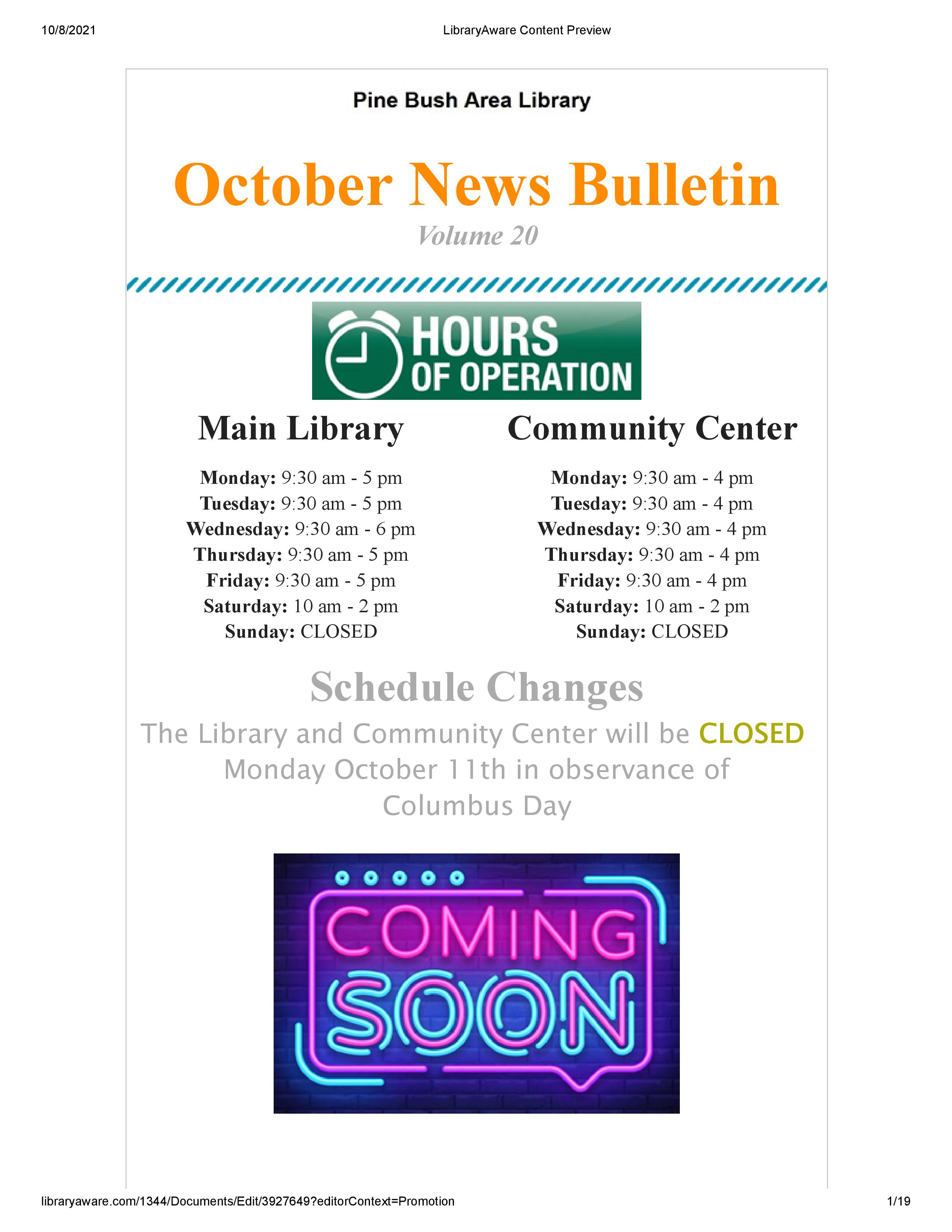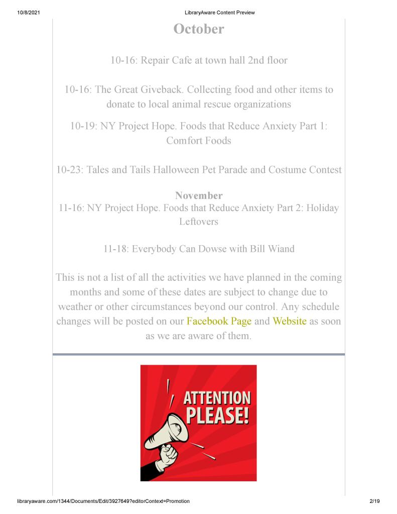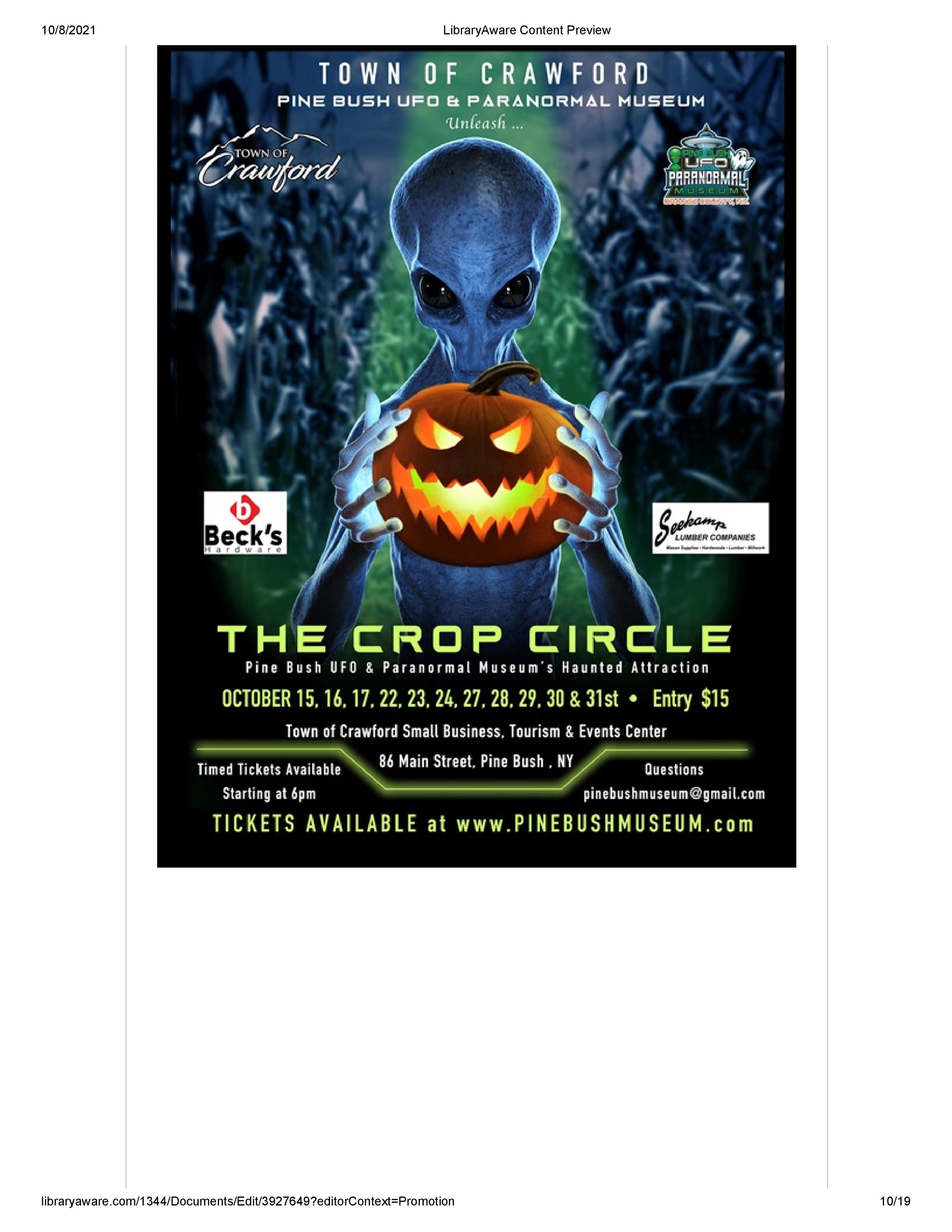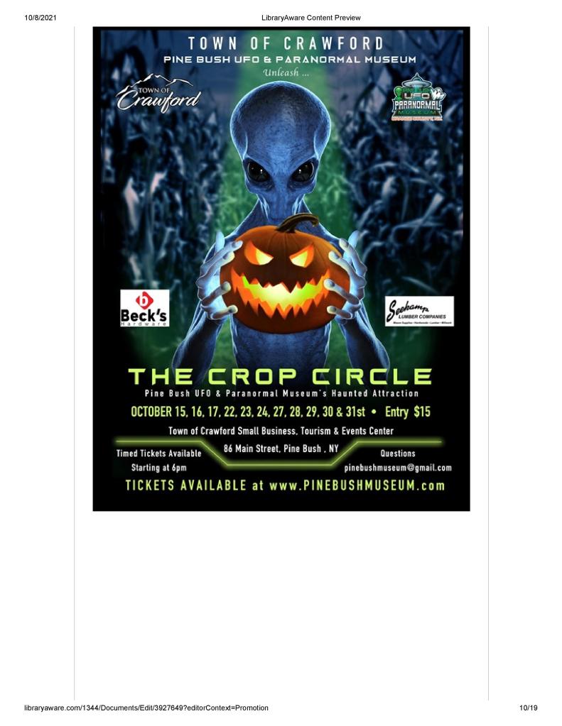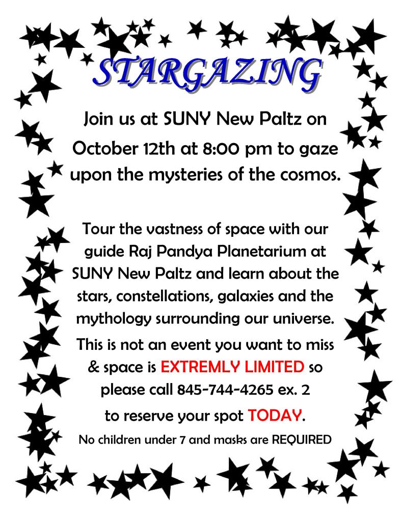 October 23rd 2:00 PM At The Pine Bush Area Public Library Lawn and parking lot.