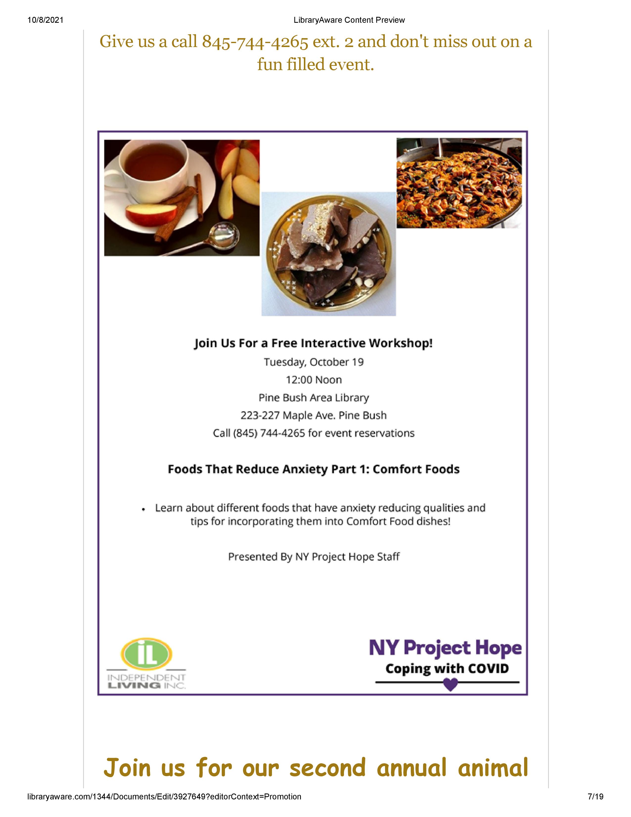 Reserve your spot!Call (845) 744-4265 x2