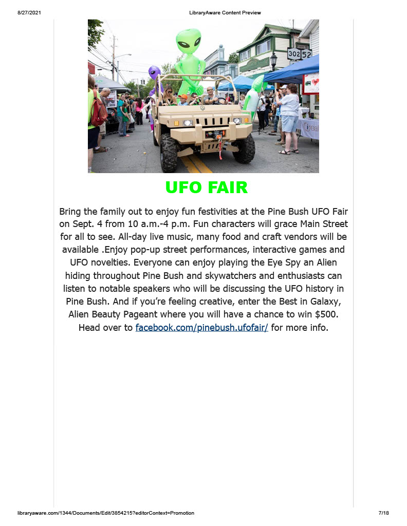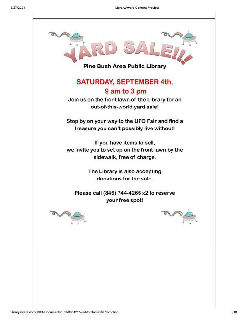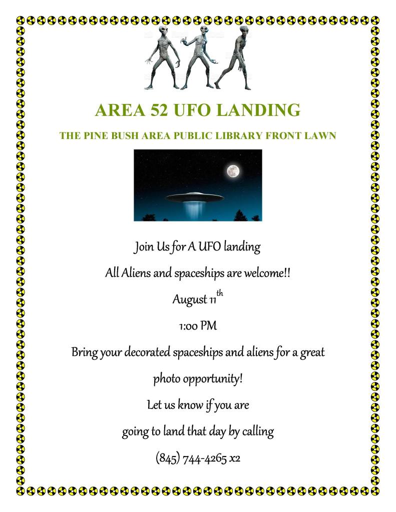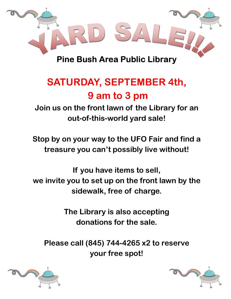 Don’t forget to stop by the library on your way to the UFO Festival to check out our Yard Sale open from 9-3.