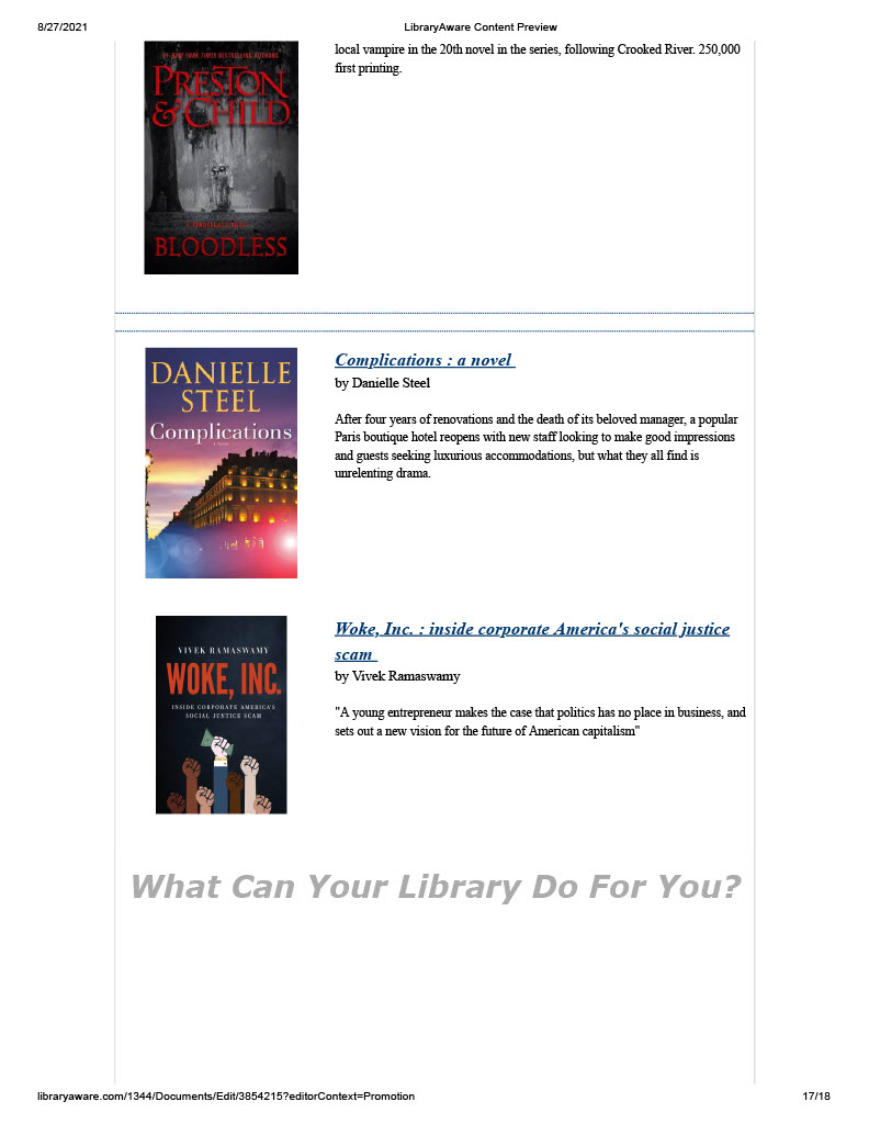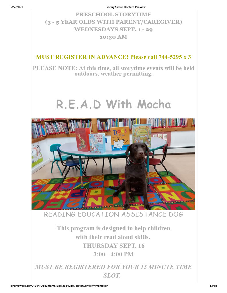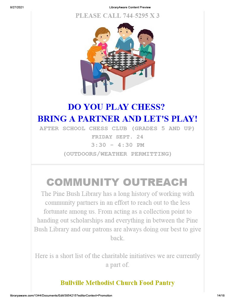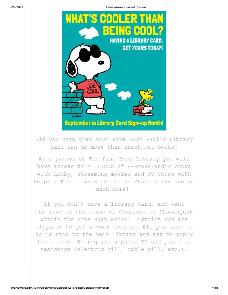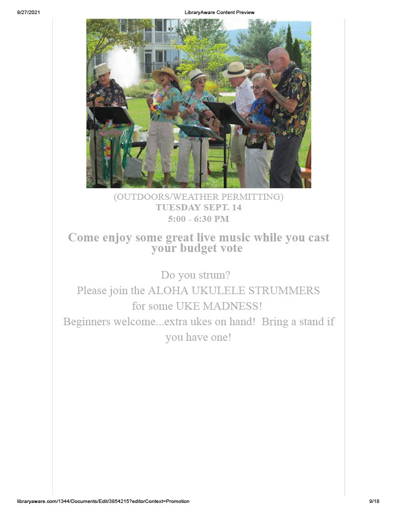 Our August news letter has been sent out. If you didn’t receive it and would like to we need your email address. You can email it to us at PBL@rcls.org, send us a privet message on Facebook or give us a call 845-744-4265 ext. 2.For anyone who wants a paper copy they will be available in the community center and main library.