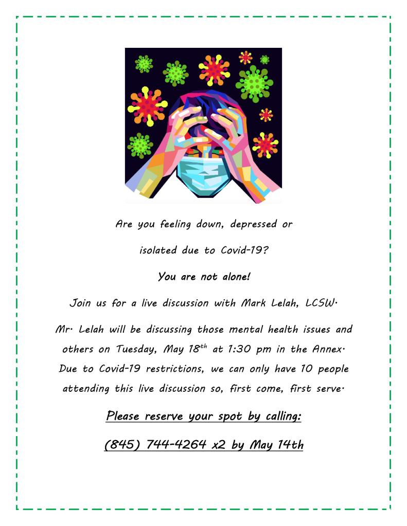The Pine Bush Library Presents; Coping With Covid. Join Mark Lelah LCSW as he shows us some tips and tools to help us deal with the aftermath of Covid.