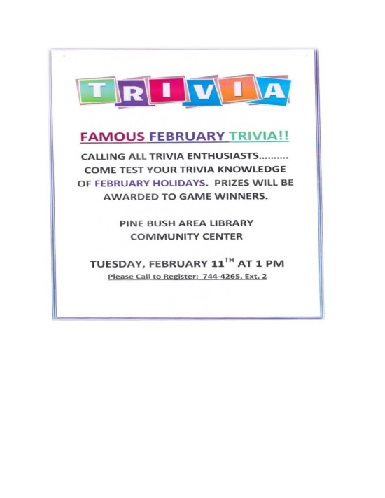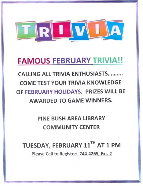 Famous February Trivia Tuesday, February 11th @ 1:00 PM