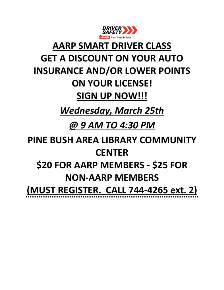 AARP SMART DRIVER CLASS WEDNESDAY, MARCH 25th