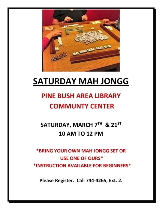 MAH JONGG SATURDAY, MARCH 7TH AND 21ST AT 10:00 AM