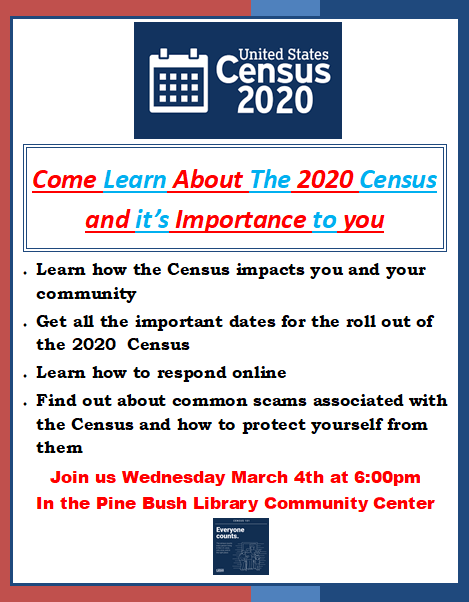 Learn About The 2020 Census… Wednesday, March 4 @ 6:00 PM