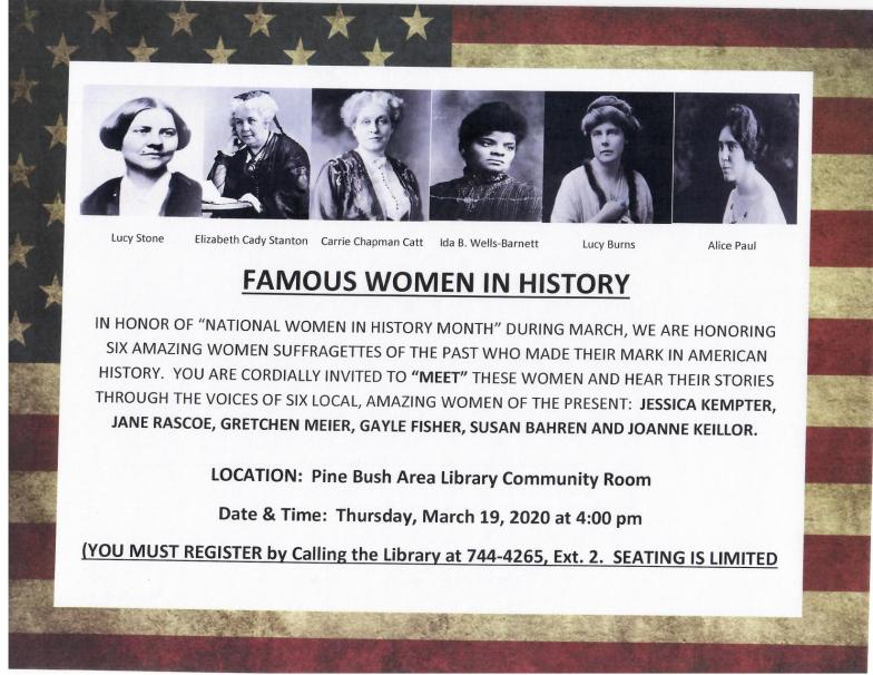 January 2020 Pine Bush Library Newsletter and calendar