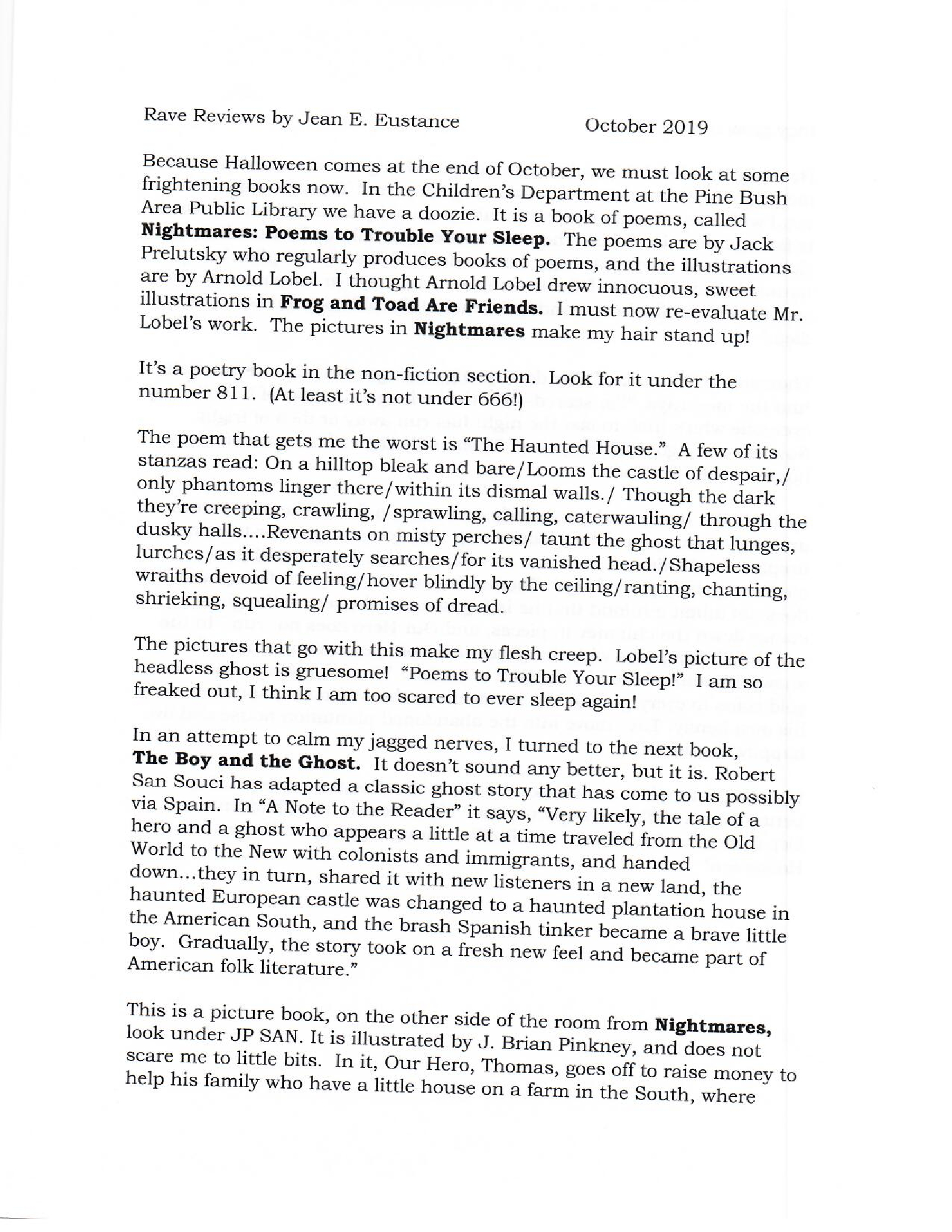 Rave-Reviews-by-Jean-E.-Eustance-October-2019-pg.-1 Published November 4, 2019 at 1700 × 2200 in Rave-Reviews-by-Jean-E.-Eustance-October-2019-pg.-1